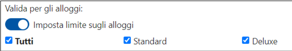 Puoi limitare un'offerta solo ad alcune tipologie di alloggio, per farlo attiva la spunta Imposta limite sugli alloggi e seleziona le tipologie valide per quel piano.