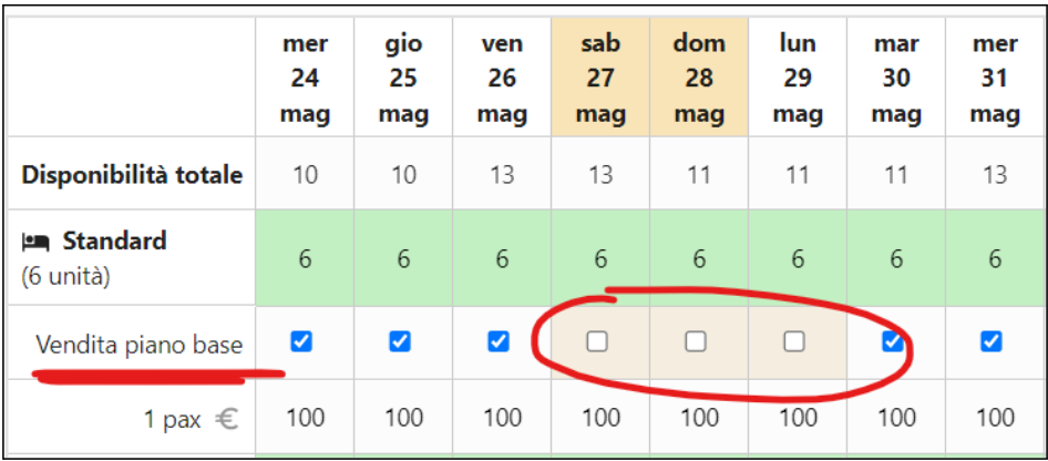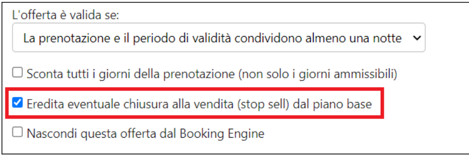 Eredita eventuale chiusura alla vendita dal piano base: sì. Se decidi di disattivare questa spunta, segnalalo all'assistenza per una verifica del collegamento con i tuoi canali. Quasi tutti i canali permettono una comunicazione di chiusure alternate tra diversi piani, ma non tutti.