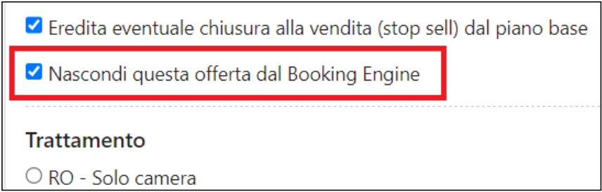 Nascondi l'offerta dal booking engine