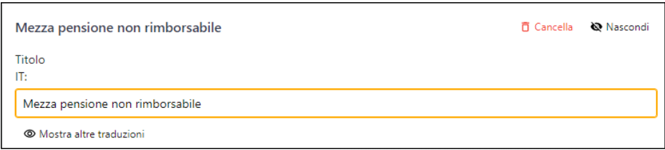 Ricorda di impostare il titolo nelle differenti lingue cliccando su Mostra altre traduzioni.