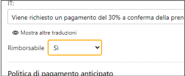 Oltre a specificare nelle politiche di prenotazione la rimborsabilità o meno dell'offerta, puoi impostarlo direttamente nel piano tariffario nell'apposito campo: