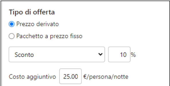 Se vuoi applicare uno sconto in €/persona/notte, ti basterà aggiungere un "-" (meno) davanti al costo aggiuntivo. Ad esempio Costo aggiuntivo: -10.00 €/persona/notte.