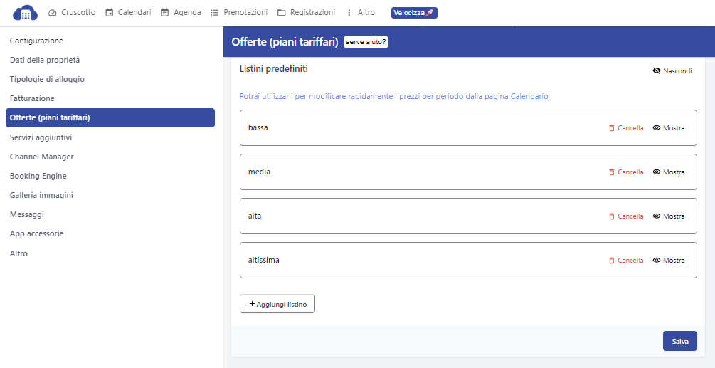 Se siete certi che in un certo periodo dell'anno avete impostato i prezzi attraverso listini predefiniti, vi consigliamo di dare un'occhiata ai valori che sono stati impostati in questa sottosezione e verificare che siano in linea con quelli presenti nella prenotazione in cui riscontrate difformità di prezzo.