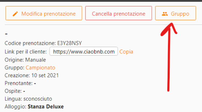 La seconda possibilità è quella di entrare in una qualsiasi delle prenotazioni del gruppo, cliccare il alto sul pulsante "Gruppo":