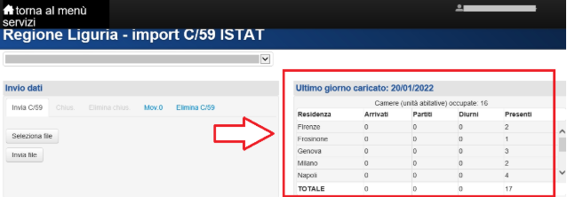 Sul portale ISTAT, vai da Invio dati > Invia C/59, sulla destra trovi presenze, arrivi e partenze, individua le discrepanze confrontando i dati con quelli che vedi da Registrazioni, su Hotel in Cloud: