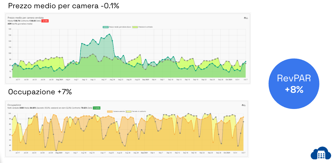 Con l’arrivo delle prime prenotazioni si raccolgono le informazioni sui periodi più richiesti che permettono a Sinapsi di applicare degli aumenti mirati basati sull’analisi dell’elasticità della domanda;