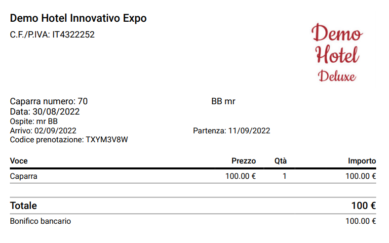 8. Nella ricevuta/fattura, troverai i dettagli del documento caparra e degli altri pagamenti: