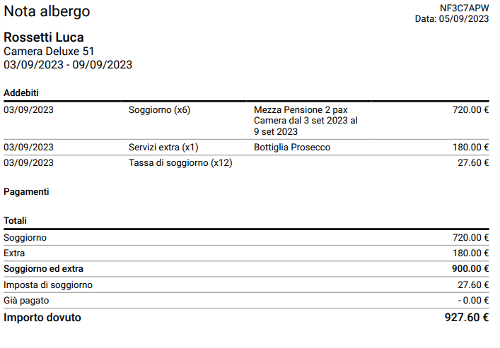 Per inserire nel preconto tutti gli addebiti: Nella sezione Addebiti clicca su Nota albergo (tutti)