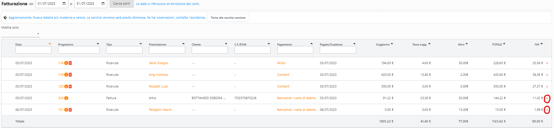 Le fatture e le ricevute possono essere cancellate direttamente da Hotel in Cloud SOLO SE è presente una di queste condizione:
