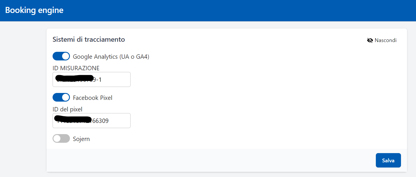 Se utilizzi Google Analytics, puoi impostare il tuo codice di tracciamento all'interno del Booking Engine di Hotel in Cloud.