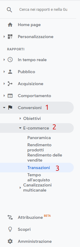 Dove vedo le transazioni su Google Analytics?