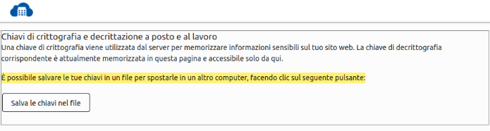 La chiave di crittografia generata per la tua struttura è un file da scaricare e salvare.