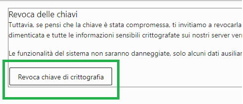 Quindi clicca su Revoca chiave di crittografia, scrivi "REVOKE_KEYS" e clicca OK.