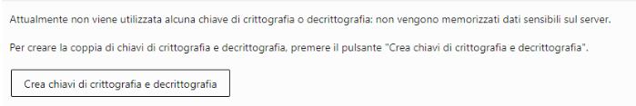 Dalla pagina di configurazione della crittografia, clicca su Crea chiavi di crittografia e decrittografia.