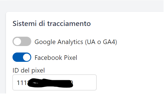 Una volta creato un profilo e ottenuto l'ID del "Pixel" è sufficiente inserire l'id nell'apposita sezione che trovi nel gestionale alla pagina Altro > Configurazione > Booking Engine > Sistemi di tracciamento: