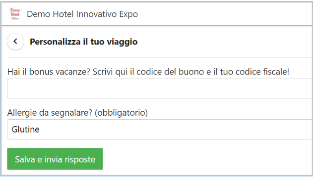 Nella App Welcome (il portale del viaggiatore) è possibile inserire un questionario personalizzato dove chiedere al viaggiatore delle informazioni aggiuntive.