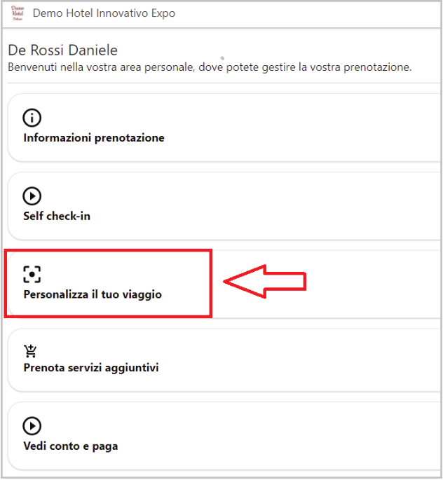 Il questionario verrà visualizzato nella App Welcome nella sezione "Personalizza il tuo viaggio"