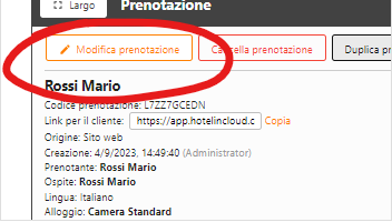 Apri la prenotazione e premi "Modifica prenotazione" in alto a sinistra: