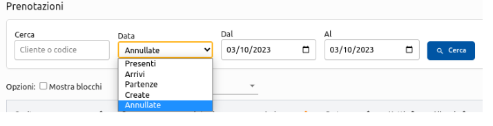Imposta il periodo che vuoi esaminare → imposta lo stato delle prenotazioni come Annullata → clicca su Cerca prenotazioni: