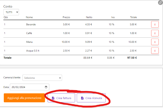 Di seguito analizzeremo due casi: se la fattura è relativa a ospiti presenti in struttura, quindi che hanno una prenotazione all'interno dell'Agenda, e se la fattura è legata a ospiti passanti, quindi non ci sono riferimento in Agenda a riguardo.