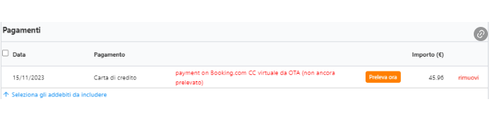 Se invece la prenotazione non ha una CC collegata su Stripe, allora non vedrete la spunta "Preleva".
