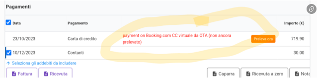 Preleva ora (tasto nella sezione Pagamenti all'interno della prenotazione) |