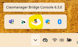 Per controllare se il Ciaomanager Bridge è attivo, clicca sulla freccina verso l’alto nell’area delle icone in basso a destra sulla barra delle applicazioni di Windows (vicino all’orologio).